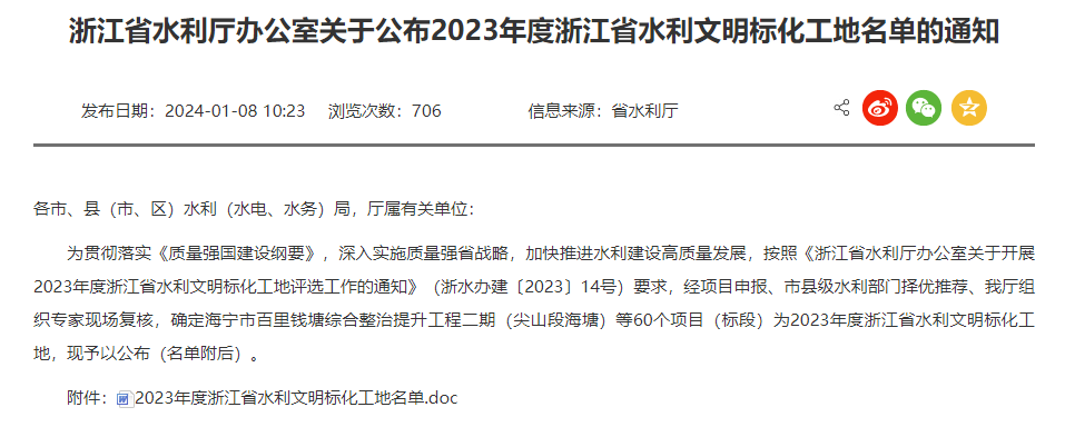 發布日期:2024.01.15 近日,經浙江省水利廳2023年度浙江省水利文明標化工地名單公布,我院承擔全過程工程咨詢的寧波市江北區小西壩泵站工程喜獲“浙江省文明標化工地”稱號,成為寧波市水利行業的標桿... -