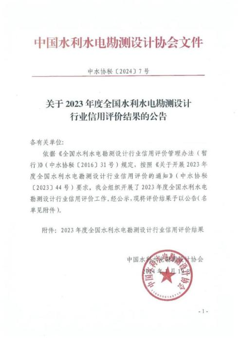 4項AAA,3項AAA+!我院在2023年度水利建設市場主體及全國水利水電勘測設計行業信用評價中再創佳績
