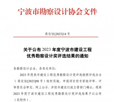 喜報 | 我院兩大項目榮獲2023年度寧波市優秀勘察設計獎!