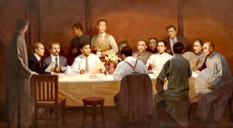7月23日晚,中國共產黨第一次全國代表大會在上海法租界望志路106號(今興業路76號)正式開幕。會址設在李書城、李漢俊兄弟住宅,大家圍坐在客廳長餐桌四周,室內沒有特別布置,陳設簡單,氣氛莊重。出席者有上海的李漢俊、李達;北京的張國燾、劉仁靜;長沙的毛澤東、何叔衡;武漢的董必武、陳潭秋;濟南的王盡美、鄧恩銘;廣州的陳公博;留日學生周佛海以及陳獨秀委派的包惠僧。陳獨秀和李大釗因公務在身未出席會議,而在代表們心目中他們仍是黨的主要創始人和領袖。