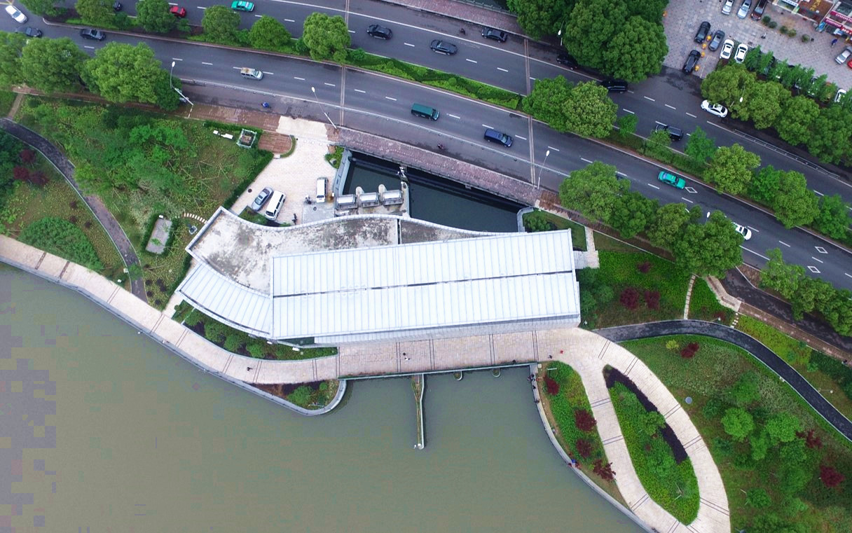 保豐碶閘站位于現有濱江公園范圍內,通過合理的建筑布置與現代的建筑設計,將水利廠房與周邊的景觀進行了有機結合,同時考慮到本工程的悠久文化底蘊,于泵站內設置了文化長廊,建成以后成為了寧波水利的一個重要對外窗口。
