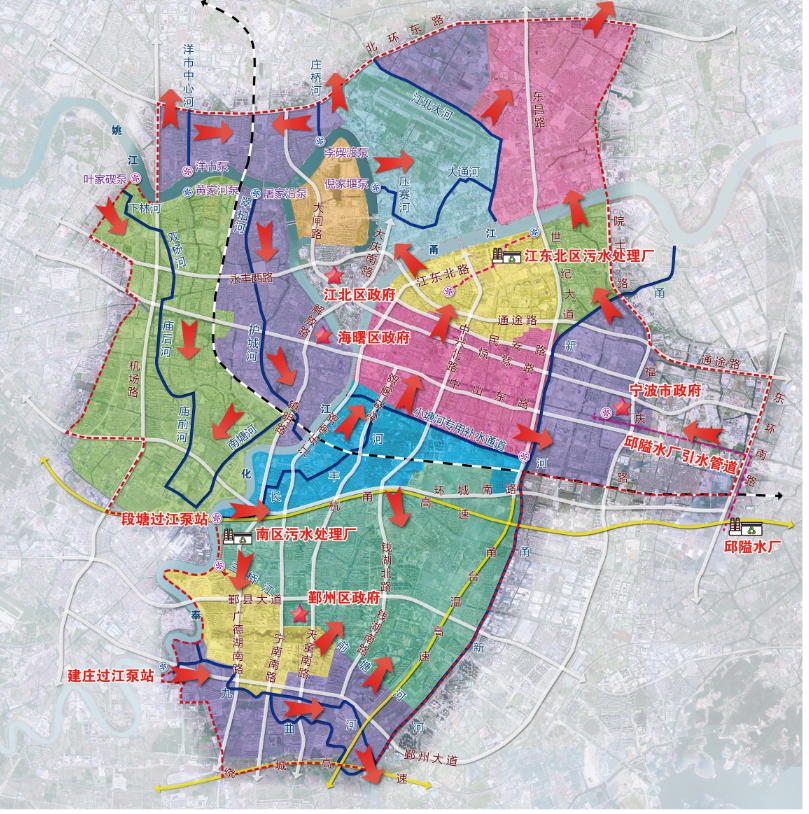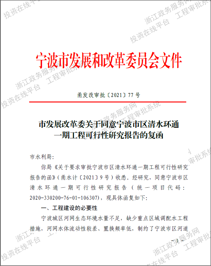 寧波市區清水環通一期工程西起機場高架、東至福慶路,北起北環高架,南至鄞州大道,面積合計約146km2,是寧波市區重要的河網引配水工程,亦是緩解老城內澇壓力的有力舉措。為提升河網環境用水量、促進水系互聯互通、改善水體流態,寧波市區清水環通一期工程創新性的引入“精準補水、高速水路”的計理念,切實解決了寧波城區現狀大水漫灌的河網調水模式下調水效率低下、補水針對性不強等痛點、難點問題。該工程可研報告于2021年5月獲寧波市發展和改革委員會批復。