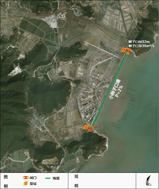 松岙鎮小獅子口區塊位于松岙鎮最東端,坐北朝南面海依山。本次小獅子口海塘安瀾工程主要包括拆除老閘新建獅子閘站和1.893公里海塘提標加固工程。其中,閘站工程包括泵站設計流量為30m3/s,水閘規模為6孔×5.5m,凈寬33m;海塘工程包括小獅子口塘提標加固至50年一遇標準。