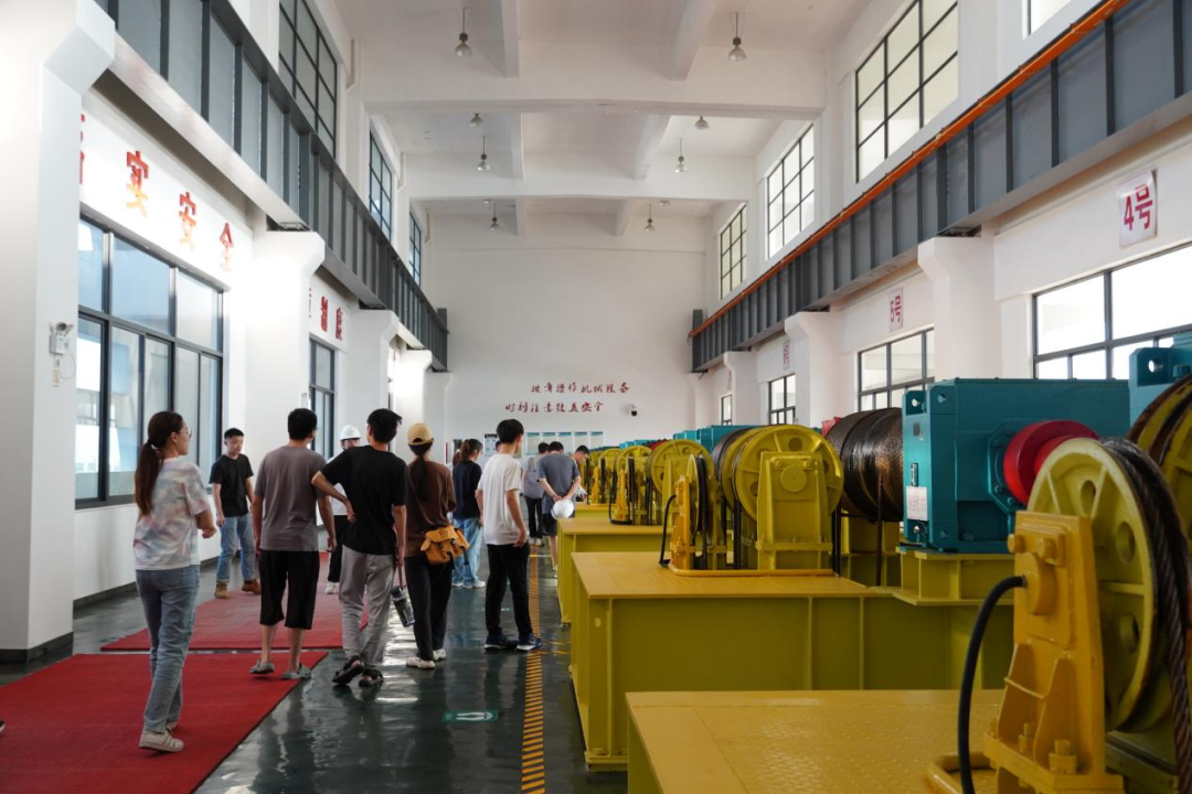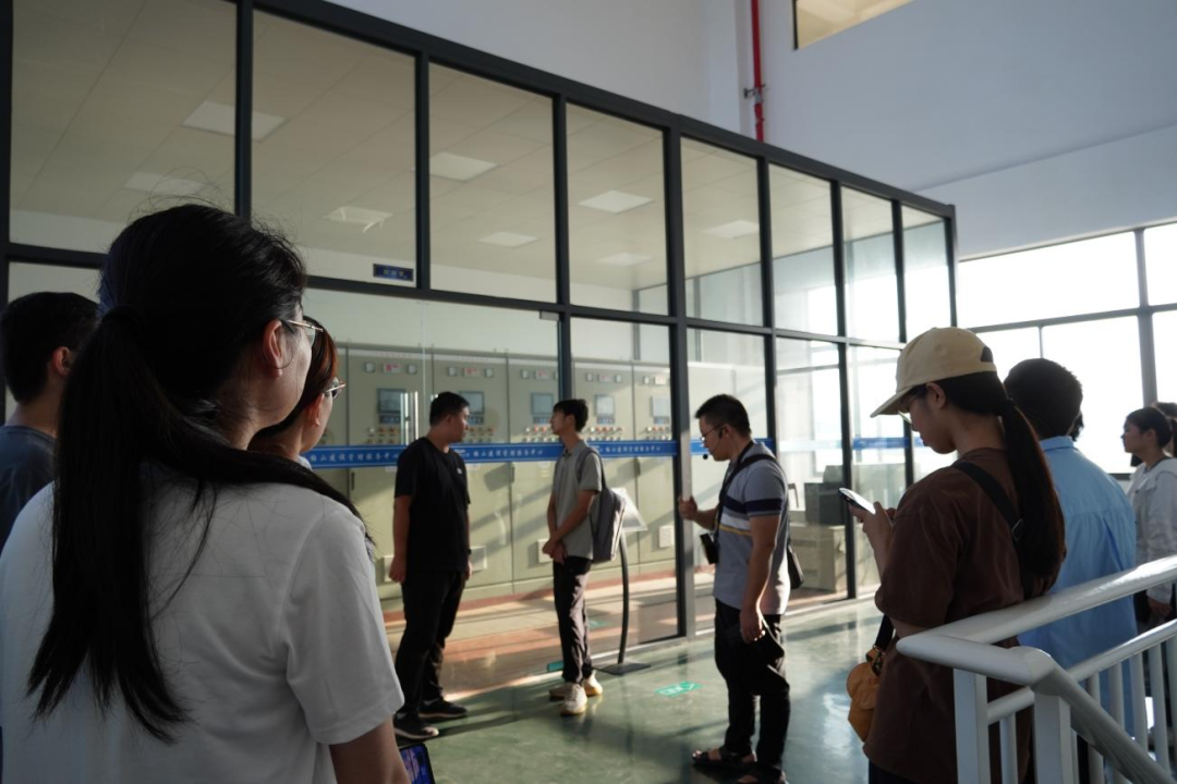 最后,研學隊伍來到北堤樞紐參觀。該工程榮獲中國建筑行業工程質量的最高榮譽獎——2020-2021年度第一批中國建設工程魯班獎。胡經理帶領研學隊伍依次進入啟閉機房、觀景臺、控制室等處,現場講解工程設計思路、建造工藝和管理要點。