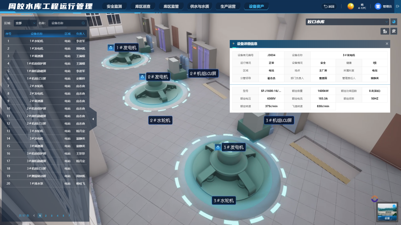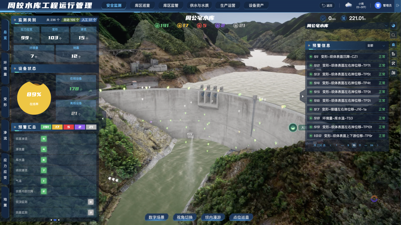 周公宅水庫運(yùn)行管理矩陣平臺“四管”工作頁面
