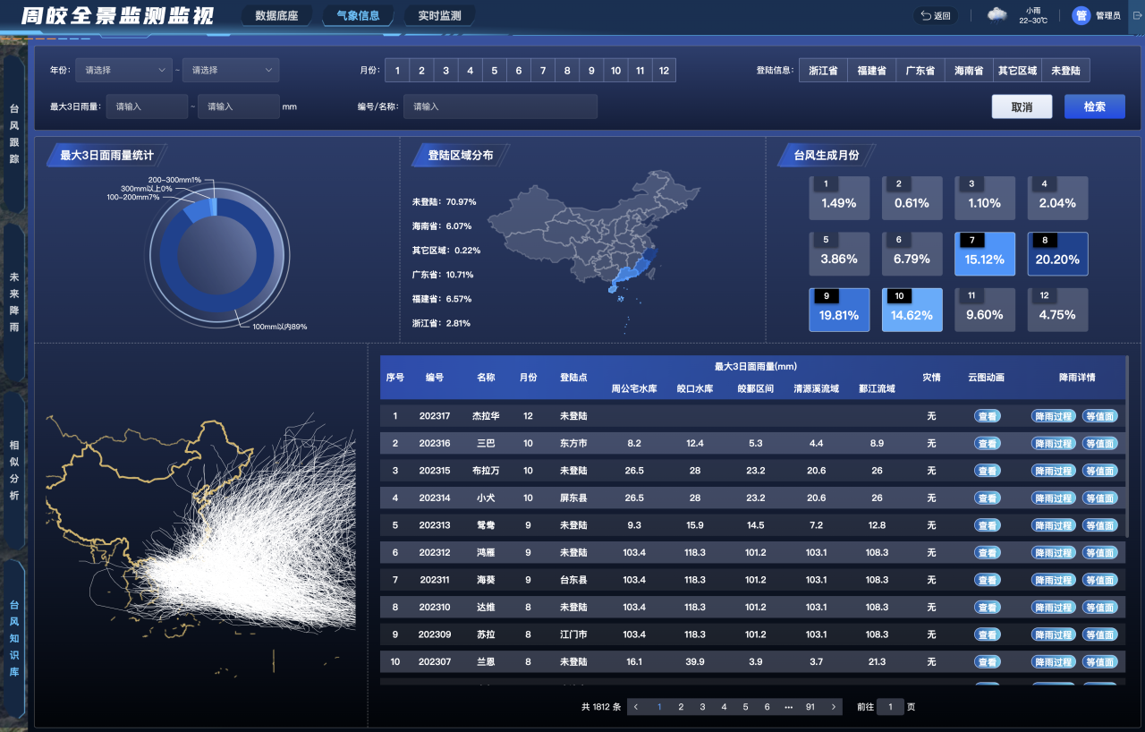 周皎全景監(jiān)測監(jiān)視模塊臺風(fēng)知識庫