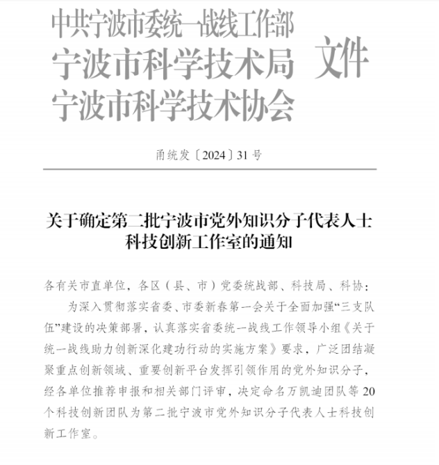 近日,寧波市統一戰線助力創新深化建功行動啟動儀式在寧波院士中心舉行。啟動儀式上,市委常委、統戰部部長林雅蓮為第二批寧波市黨外知識分子科技創新工作室團隊授牌。寧波市黨外知識分子科技創新工作室由市委統戰部會同市科技局、寧波市科協認定。我院張預定創新工作室位列其中。