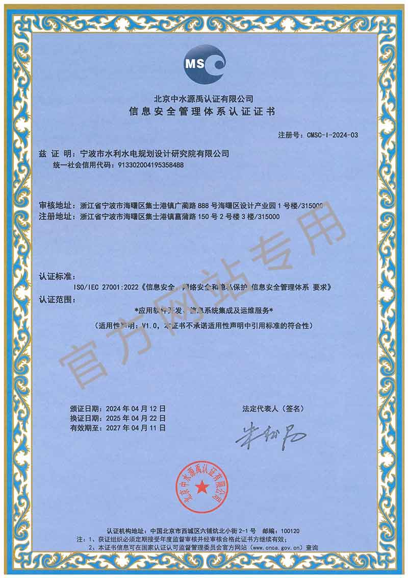 寧波院具有水利水電工程設(shè)計(jì)、工程勘察、工程咨詢、水土保持、水資源論證等多項(xiàng)資質(zhì)。承擔(dān)中小河流域規(guī)劃、水庫(kù)、河道整治、灘涂圍墾等工程的勘察、設(shè)計(jì)、咨詢、總承包業(yè)務(wù),以及各領(lǐng)域建設(shè)項(xiàng)目的防洪評(píng)價(jià)、水資源論證、水土保持方案編制、水土保持監(jiān)測(cè)、計(jì)算機(jī)行業(yè)CMMI 3級(jí)認(rèn)證、知識(shí)產(chǎn)權(quán)管理體系認(rèn)證等。